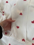 Ніжна та легка піжама виготовлена з м'якої та дихаючої тканини муслін. Має простий та елегантний дизайн! Ідеально підходить для спокійного та комфортного сну. Ця тканина добре вбирає вологу і дозволяє шкірі вільно дихати, тому вона ідеально підходить для нічного використання.